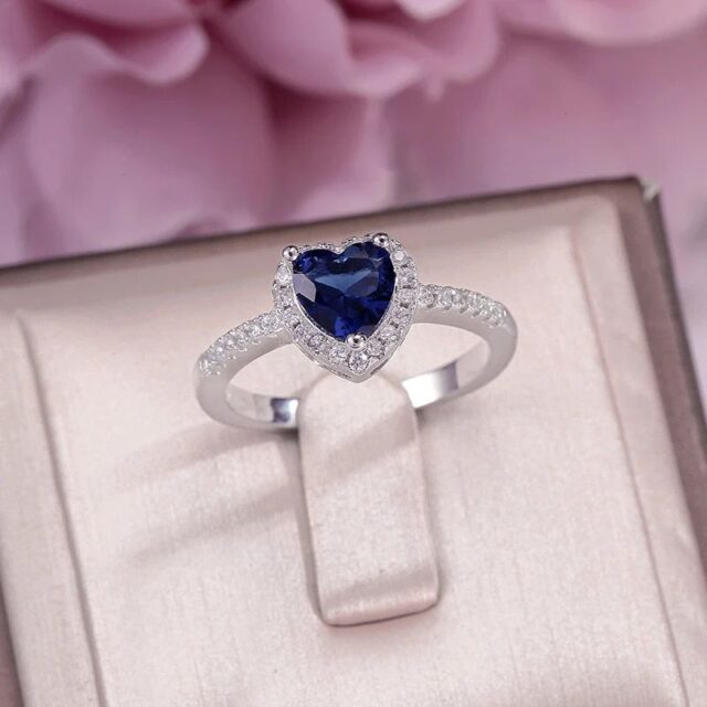 - Main Stone: Premium quality blue heart-shaped cubic zirconia
